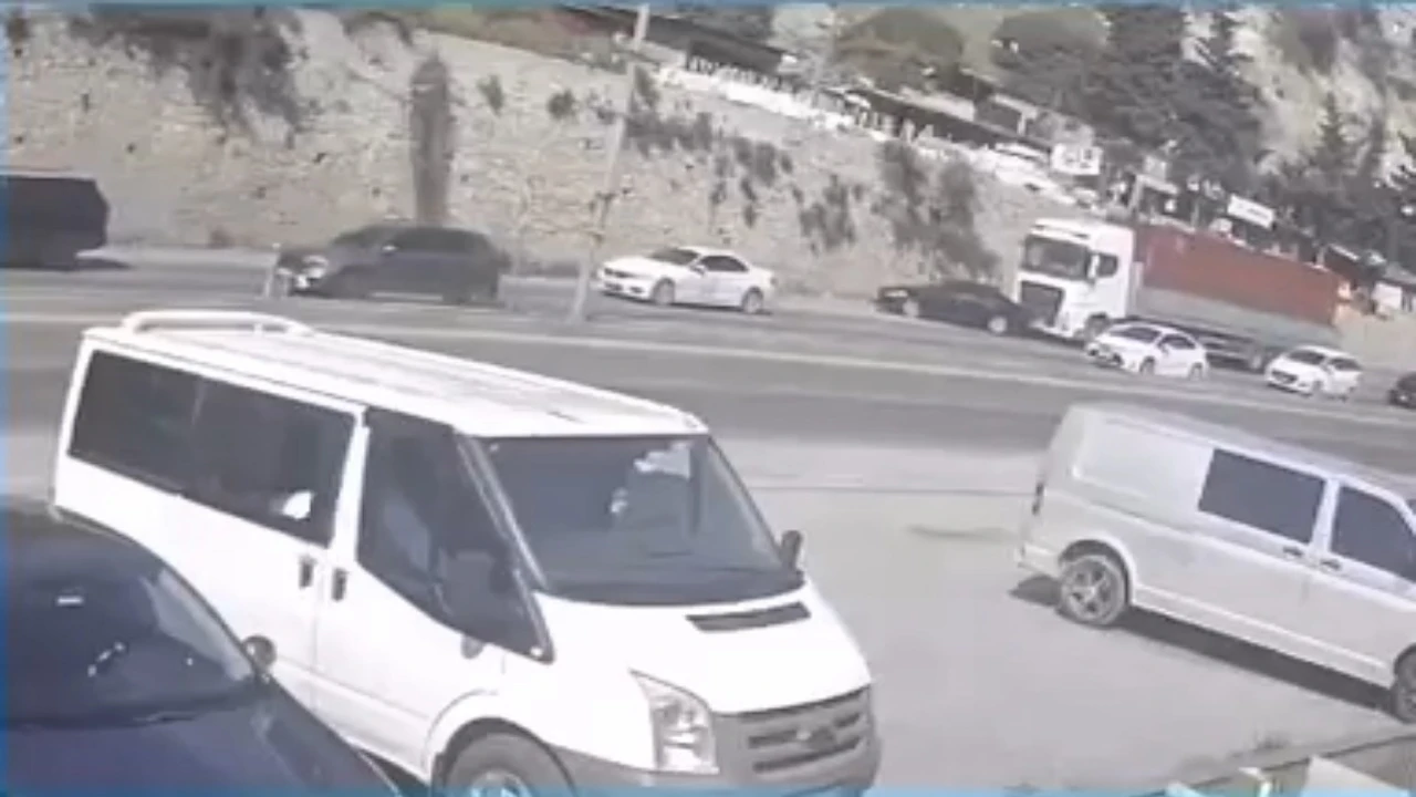 Hatay’da tır sürücüsünün önünde seyreden otomobili önüne alarak sürüklediği anlar güvenlik kamerasına yansıdı.