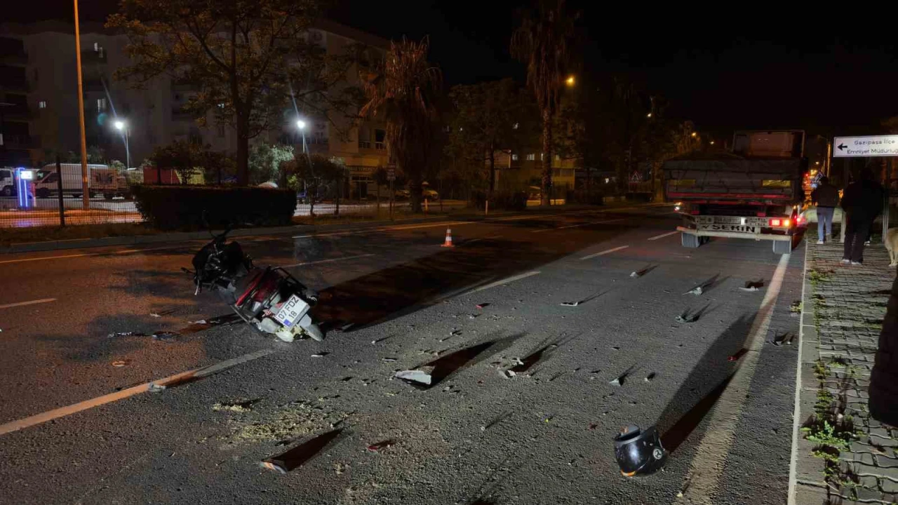 Kaza, saat 22.30 sıralarında Yeni Mahalle Ulusal Egemenlik Bulvarı D-400 Karayolu’nda meydana geldi. Edinilen bilgiye göre, Anamur’dan Gazipaşa yönüne seyreden S.Ö. (14) idaresindeki 07 FDZ 18 plakalı motosiklet, aynı yönde ilerleyen E.Y.’nin kullandığı 58 ADN 991 dorse 58 ADY 534 çekici plakalı tırla çarpıştı. Çarpmanın etkisiyle devrilen motosikletten düşüp asfalt zemine savrulan 14 yaşındaki motosiklet sürücüsü kazada ağır yaralandı. Kazayı görenler durumu 112 Acil Çağrı Merkezine bildirdi. İhbar üzerine olay yerine polis ve sağlık ekipleri sevk edildi. İlk müdahalesinin ardından kalbi durduğu belirlenen sürücü, ambulansa alınarak dakikalarca kalp masajı yapıldı. Sağlık ekiplerince kalbi yeniden çalıştırılan S.Ö., Gazipaşa Devlet Hastanesine kaldırıldı. Burada kontrolden geçirilen S.Ö., ileri tetkik ve tedavisi için Antalya Eğitim ve Araştırma Hastanesine sevk edildi.