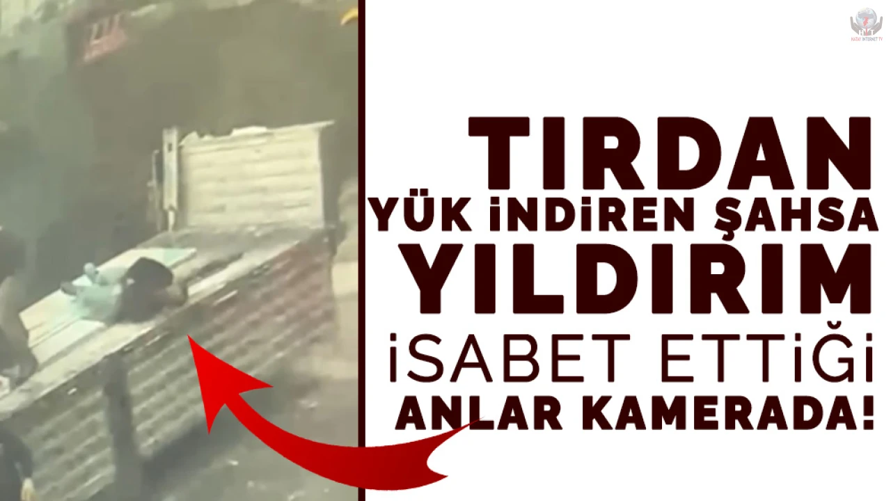 HATAY (İHA) - Hatay'ın Arsuz ilçesinde tır dorsesinden yük indirirken yıldırımın isabet ettiği şahıs ağır yaralandı. Olay anı güvenlik kamerasınca kaydedildi.