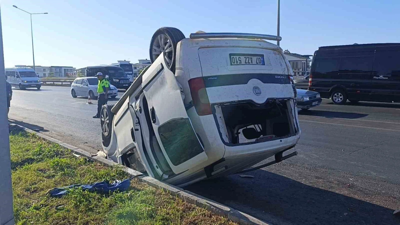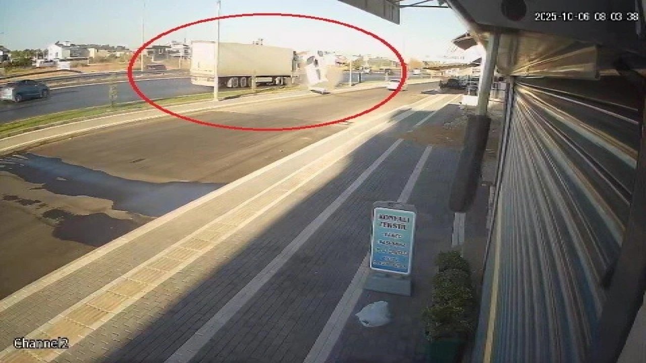 Antalya’da tır ile çarpışıp takla atan hafif ticari aracın sürücüsü kazayı hafif yaralı atlattı. Kaza anı güvenlik kamerasına saniye saniye yansıdı.