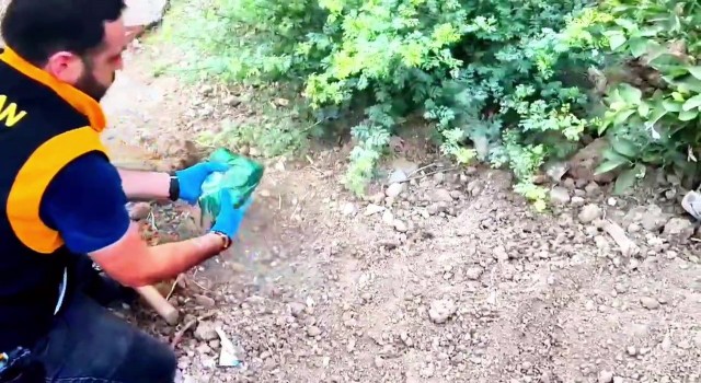 Kazmayla toprağı kazıp silahları buldular