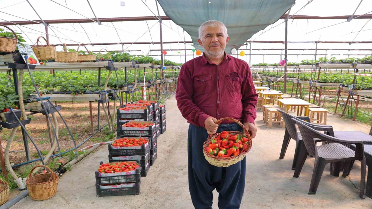 Kahramanmaraş’ta 7 dönüm alana kurulan modern serada topraksız tarım yöntemiyle üretilen çilekleri vatandaşlar dalından kendileri toplayarak satın alıyor.