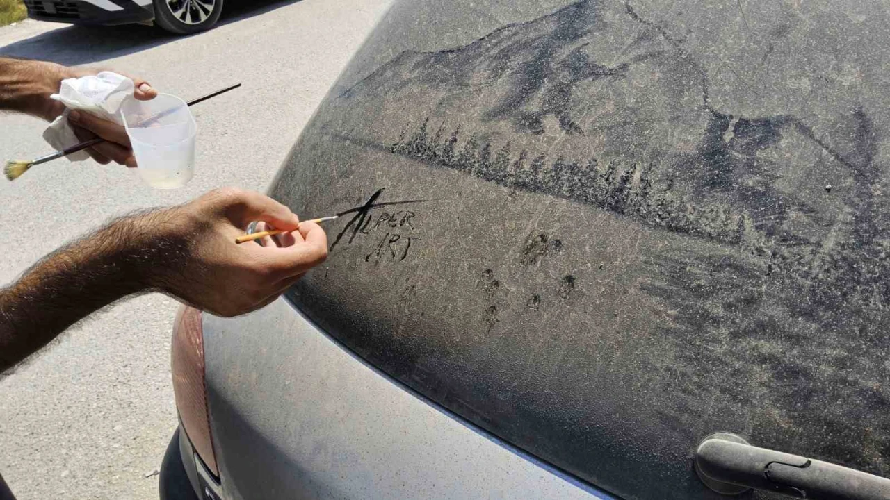 ANTALYA’NIN AKSU İLÇESİNDE YAŞAYAN, 4 YAŞINDAN BU YANA RESİM YAPAN İŞİTME ENGELLİ RESSAM ALPER KOCABIYIK, ALIŞILMIŞIN DIŞINDA BİR TUVAL KULLANIYOR. KOCABIYIK, TOZLU ARAÇLARIN CAMLARINI ADETA SANAT ESERİNE DÖNÜŞTÜRÜYOR.