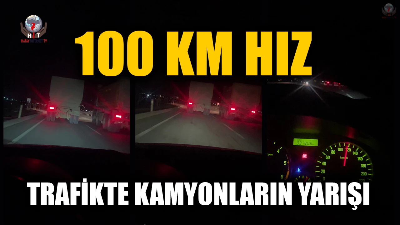 Asrın felaketi sonrası Hatay'da trafikte sayıları artan mikser ve hafriyat kamyonları trafiği zaman zaman tehlikeye düşürüyor. Antakya ilçesi havaalanı yolunda 2 hafriyat kamyonunun yarıştığı anlar trafikteki başka bir araç sürücüsü tarafından görüntülendi. Arkalarından seyreden ve hızları 100 kilometreyi bulan kamyonların o anları anbean görüntülendi.