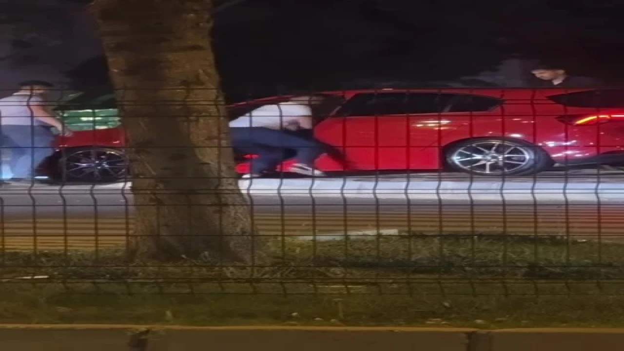 Saldırı anı ise olay yerinden geçen başka bir sürücü tarafından cep telefonu kamerasıyla anbean kaydedildi.