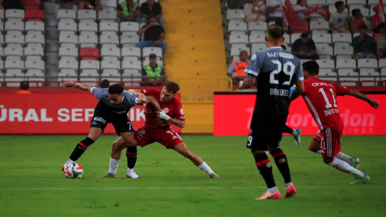 TRENDYOL SÜPER LİG'İN 4. HAFTASINDA ANTALYASPOR, SAHASINDA FATİH KARAGÜMRÜK'Ü AĞIRLIYOR. MÜSABAKANIN İLK YARISI 1-1 BERABERLİKLE TAMAMLANDI.