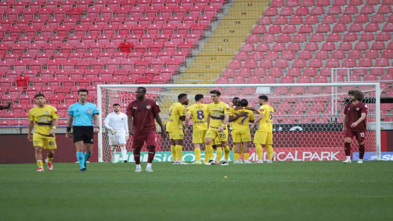 23. dakikada Hatayspor’un kendi yarı sahasının ortasında kazandığı serbest vuruşta Massanga topu kalecisine gönderdi. Kaleci Biekaj’ın pasında Massanga’nın uzaklaştırmak istediği top, Görkem’e çarptı. Pozisyonun devamında topu önünde bulan Mame Thiam, aşırtma vuruşla meşin yuvarlağı ağlara gönderdi. 0-1