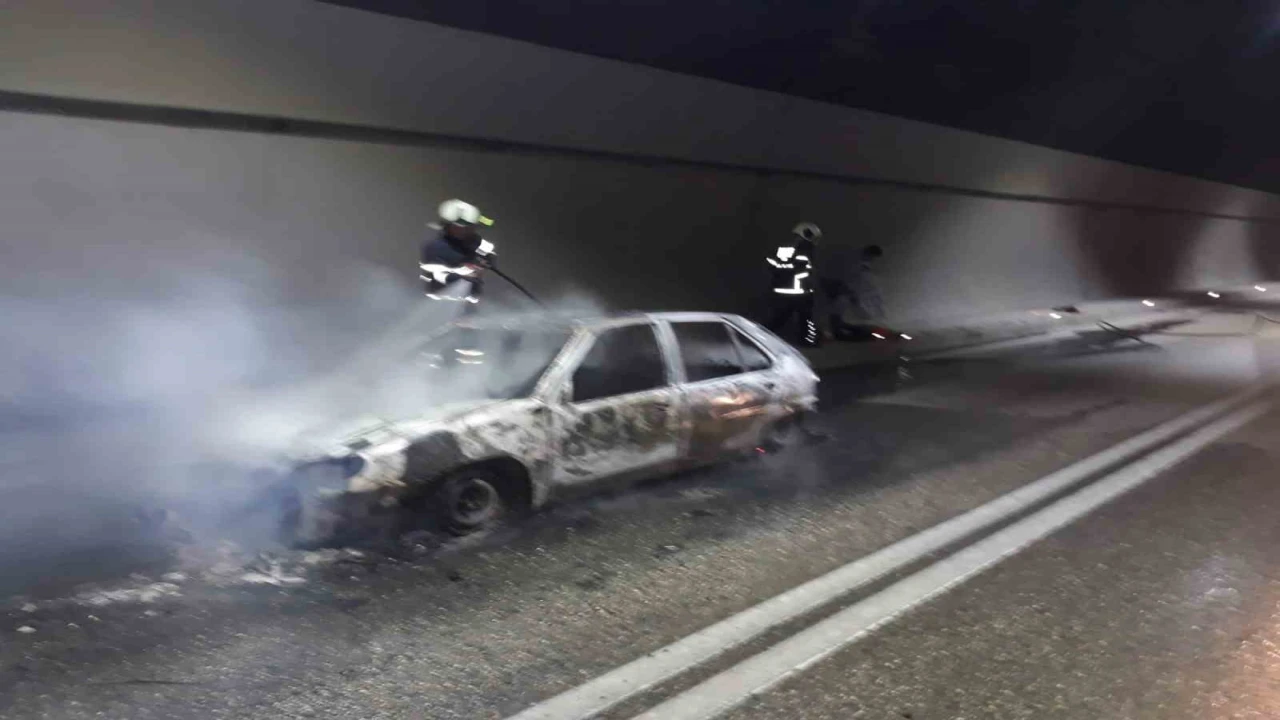 Antalya-Isparta karayolu Kargı Tüneli içerisinde seyir halindeyken alev alan otomobil tamamen yanarak kullanılamaz hale geldi.