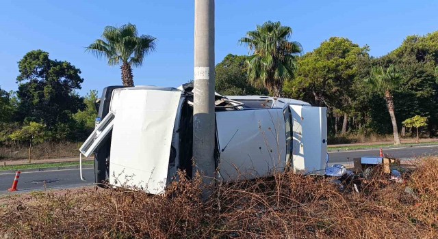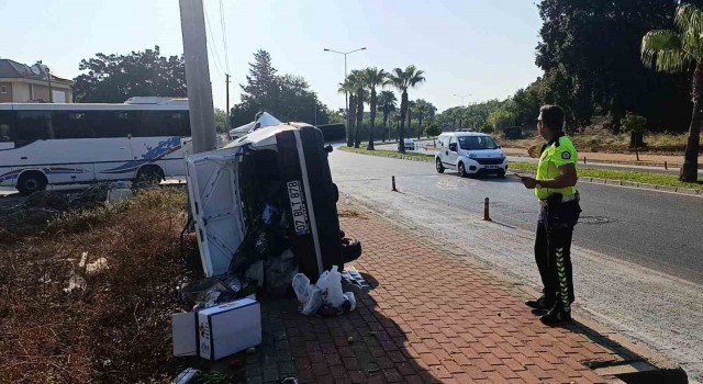 Antalya’nın Manavgat ilçesinde aynı istikamette seyreden bir safari cip ile çarpışıp yoldan çıkan otomobil betonarme aydınlatma direğine çarparak hurdaya döndü. Sürücü büyük şans eseri araçtan yaralı olarak çıkarken kaldırıma çarpıp devrilmekten son anda kurtulan ve içinde turistlerin bulunduğu safari cip durmadan yoluna devam etti. Kaza anı güvenlik kamerasına yansırken sürücü ise kazayı görenlerin yardımıyla hurdaya dönen otomobilden yürüyerek çıktı.