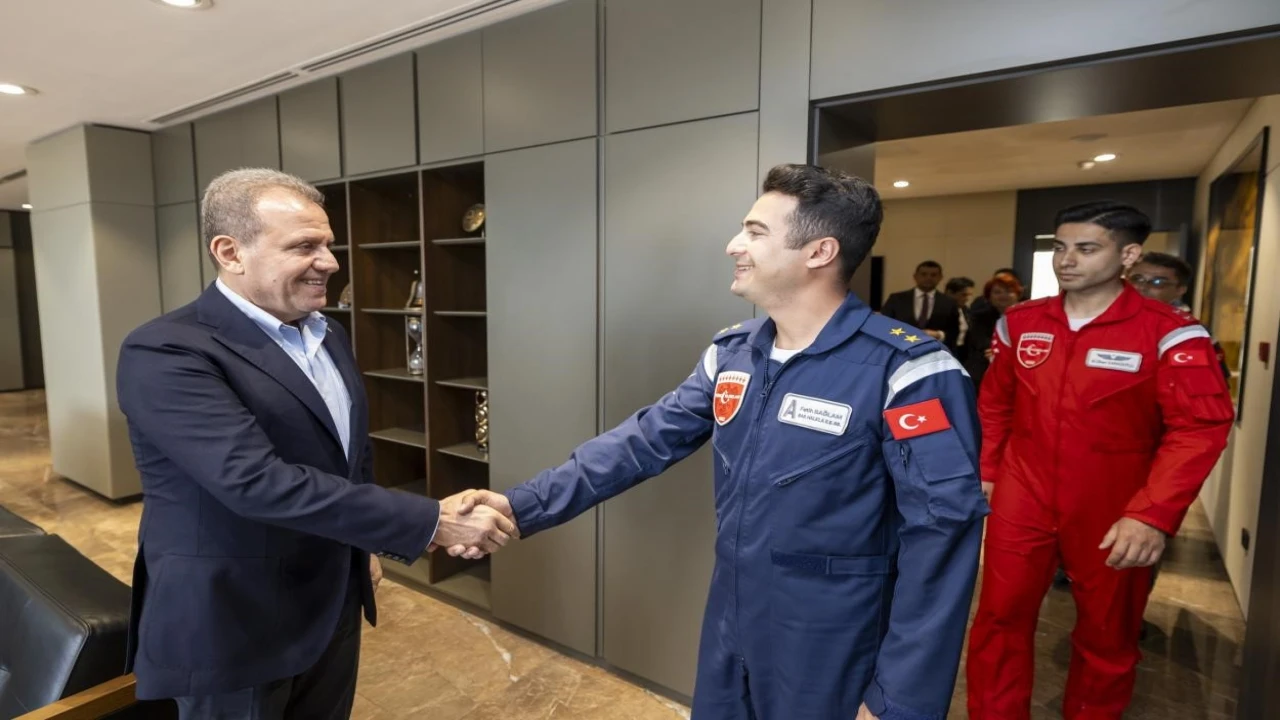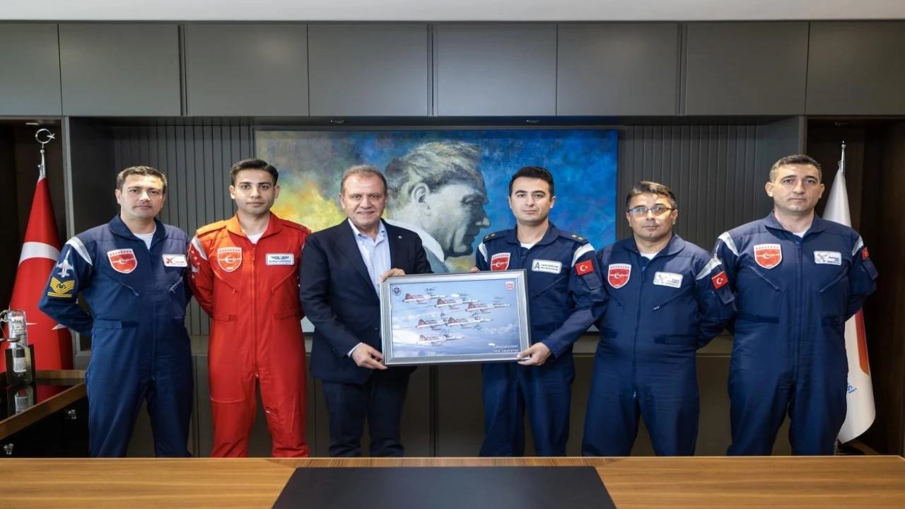 Türk Yıldızları ekibinden Üsteğmen Fatih Sağlam, Üsteğmen Mehmet Cihad Karadutlu, Kıdemli Başçavuş İbrahim Genç ve Üstçavuş Ramazan Göz, Mersin Valiliği himayesinde, Büyükşehir Belediyesi koordinesinde gerçekleşecek görsel şölen öncesi Vali Atilla Toros ile bir araya geldikten sonra Büyükşehir Belediye Başkanı Vahap Seçer’i ziyaret etti.