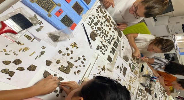 Çevik, “Şimdi rengarenk ve yepyeni bir bulgumuz var. Bu unsuru da arkeoloji bilgilerine kattığımız için bu sene çok heyecanlı ve memnun bir yıl geçirdik. Ofisimizde binlerce kırık parça var, on arkadaşımız daha fazla plakayı tümlemek için sürekli parça arıyor. Şu an en az 20 30 tane plakayı tümlemiş olmak bize keyif veriyor, büyük ihtimalle daha fazla da tümlenecek. Parçaları buldukça plakalar tümleniyor. Ve her birisi de farklı desenlerde ayrı eser niteliğinde çıkıyor” dedi.