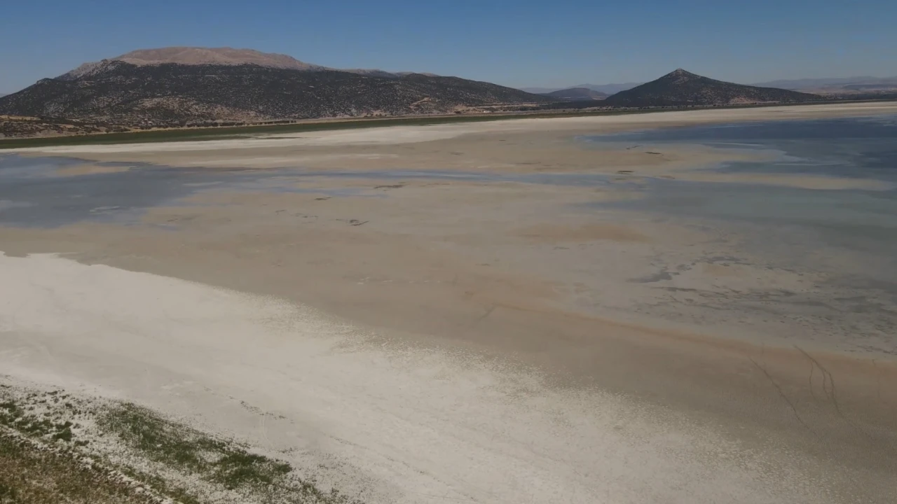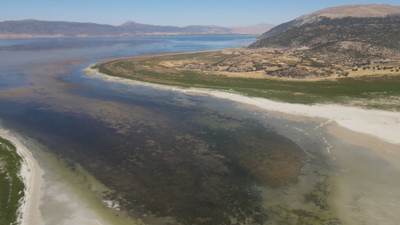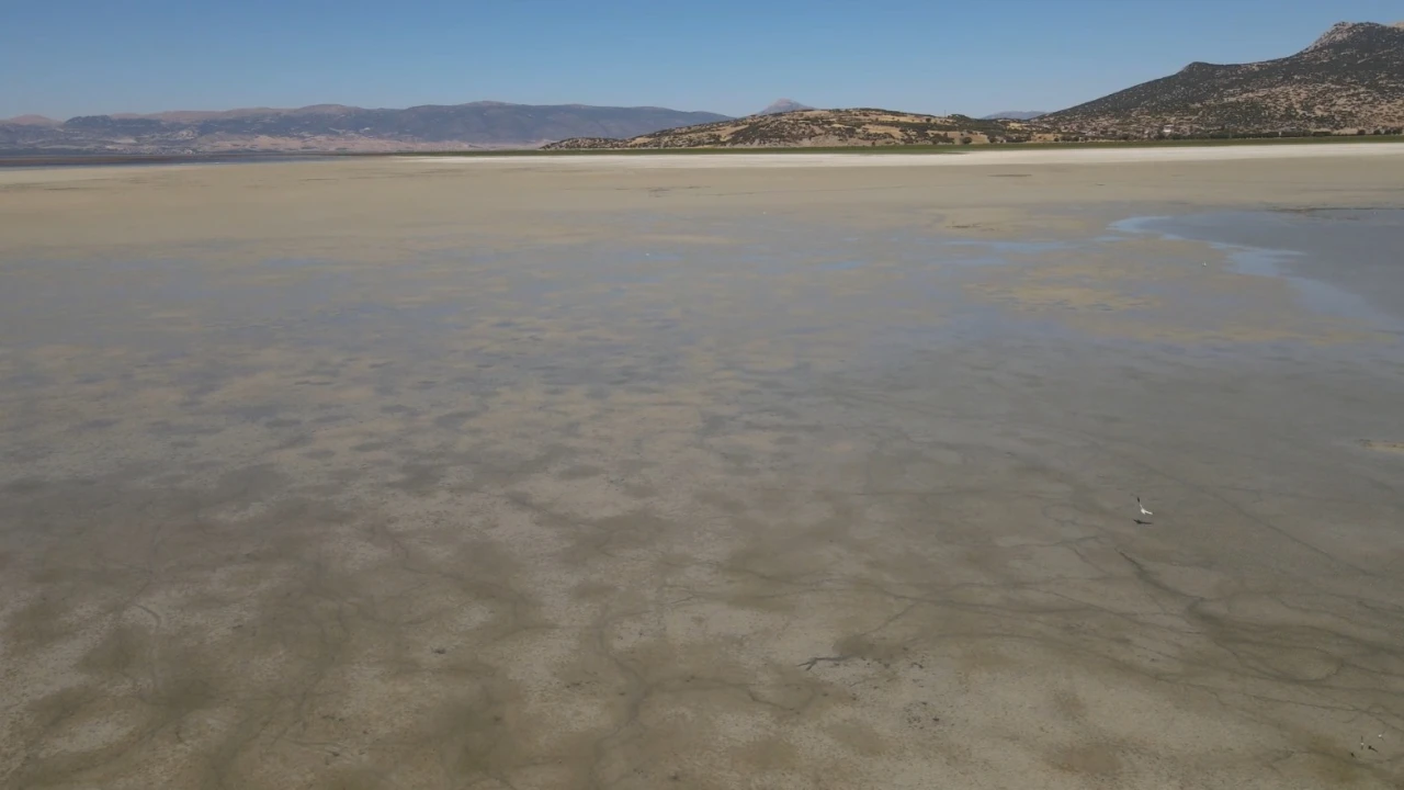 Dronla yapılan havadan çekimlerde, gölün orta kesimlerinde suyun tamamen çekildiği ve yer yer adacıkların oluştuğu görüldü. Gölün adeta ikiye bölünmesi ise dikkat çekti.
