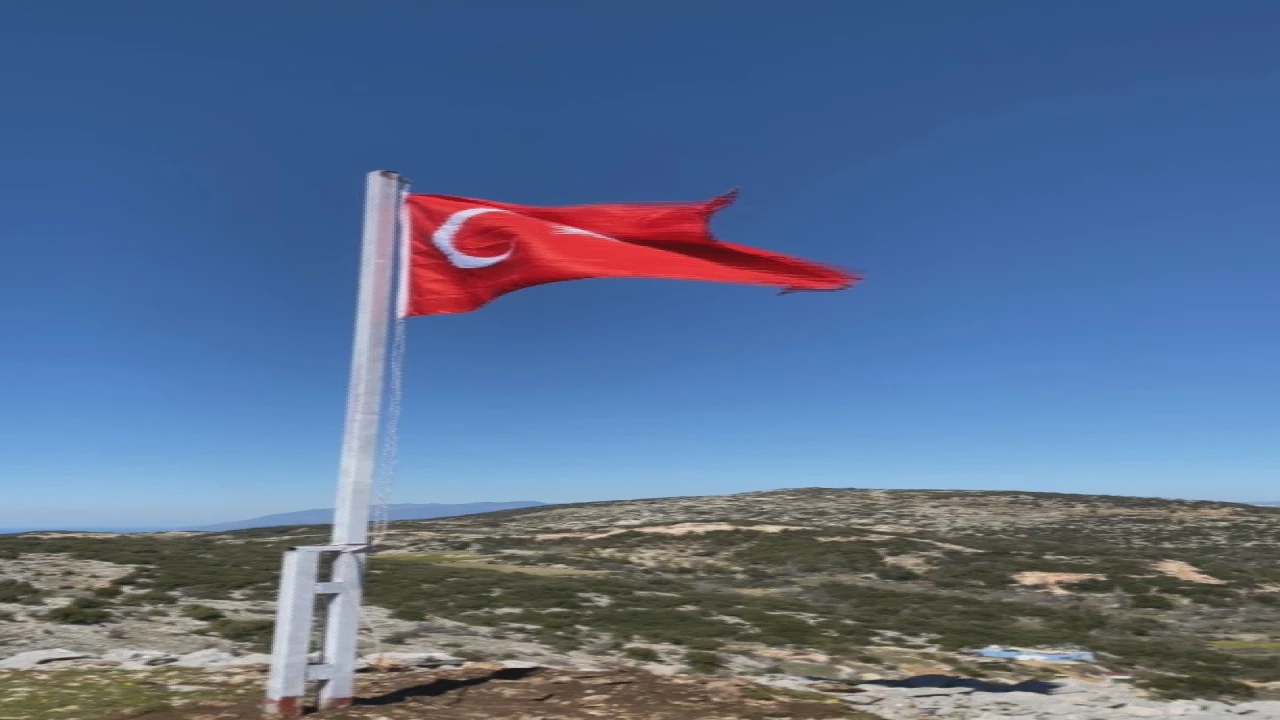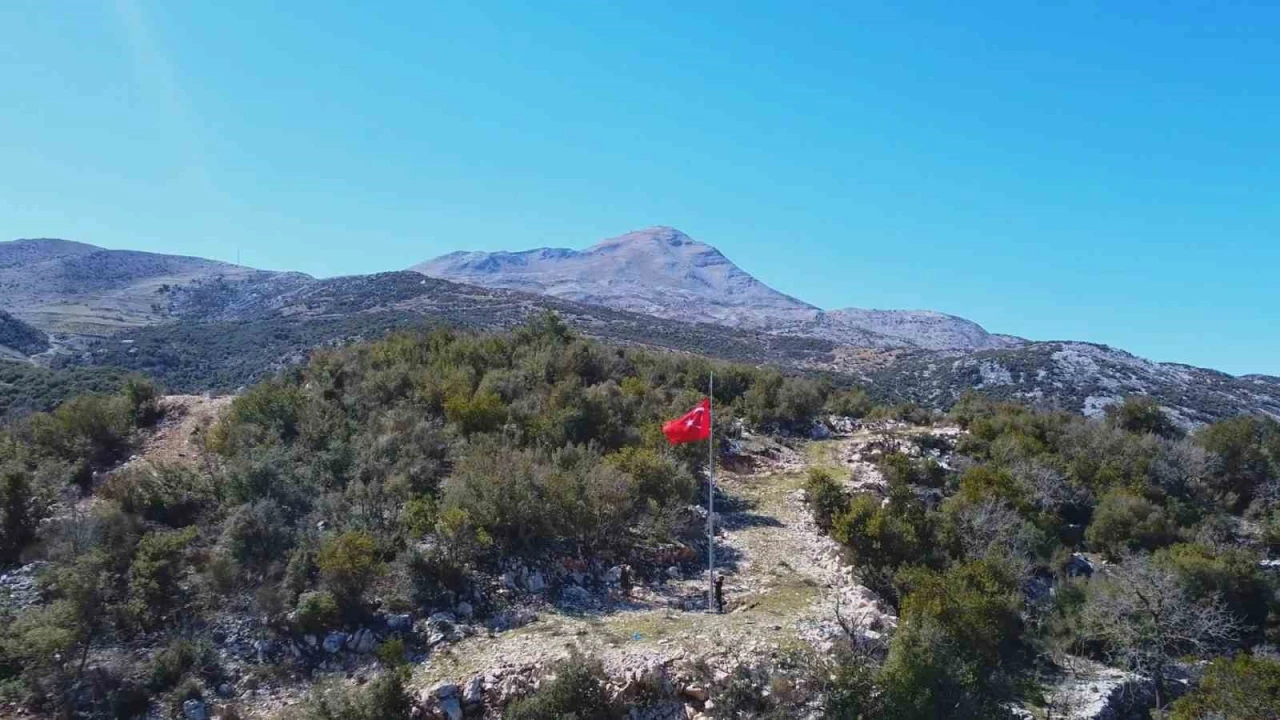 HATAY (İHA) – Türkiye’nin en güneyinde yer alan Suriye sınırındaki Hatay’ın Yayladağı ilçesi Bezge Mahallesi’nde 7 ayrı tepeye 7 Türk bayrağı dikildi.