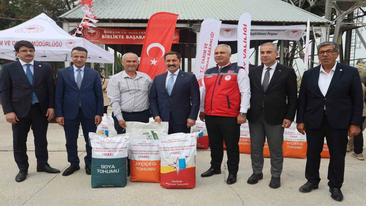 Bölge çiftçisine verilen desteklere değinen ve ata tohumunun önemini vurgulayan Hatay Valisi Masatlı, "Kadim şehrimiz Hatay'ımız; insanıyla, iklimiyle, kültürüyle ve doğasıyla Türkiye'nin eşsiz coğrafyalarından biridir. Hatay'da hayvan varlığı ve tarımsal üretim olarak önemli zararla karşı karşıya kaldık. Bununla ilgili de defalarca Kırıkhan ve diğer ilçelerde çok fazla hayvanla, makineyle ve tohumlarla çiftçilerimizi destekledik. Bugün de kıymeti çiftçilerimiz özellikle bölgemiz açısından önemli arz eden başta tohum ve makine olmak üzere dağıtım yapacağız. Tohum deyince bunun altına önemle çizmek isterim. Değerli çiftçilerimiz sizde de iyi bilirsiniz ki tohum ülkemiz açısından bir beka meselesidir. Biz ata tohumumuzu muhafaza edeceğiz, geliştireceğiz ve topraklarımızla buluşturup en fazla üretimi almak için çalışacağız. Bugün dağıtacağımız başta tohumlar olmak üzere; ayçiçek tohumu, soya tohumu, pamuk tohumu ve zeytin hasat makinesinin toplam bütçesi 35 milyondan fazladır. Bunlardan da 5 bin 662 çiftçimiz yararlanacak. Üreticilerimize bol bereketli ve bol kazançlı bir sezon diliyorum" dedi.