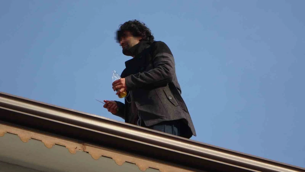 Hasan İ.’nin aç olduğunu söylemesi üzerine olay yerine dürüm siparişi verilirken, şahsın aşağı inerek dürümü iştahla yediği gözlendi. Diğer taraftan şahsın kendisini yakacağını belirttiği pet şişe içerisindeki sıvının da idrar olduğu belirlendi.