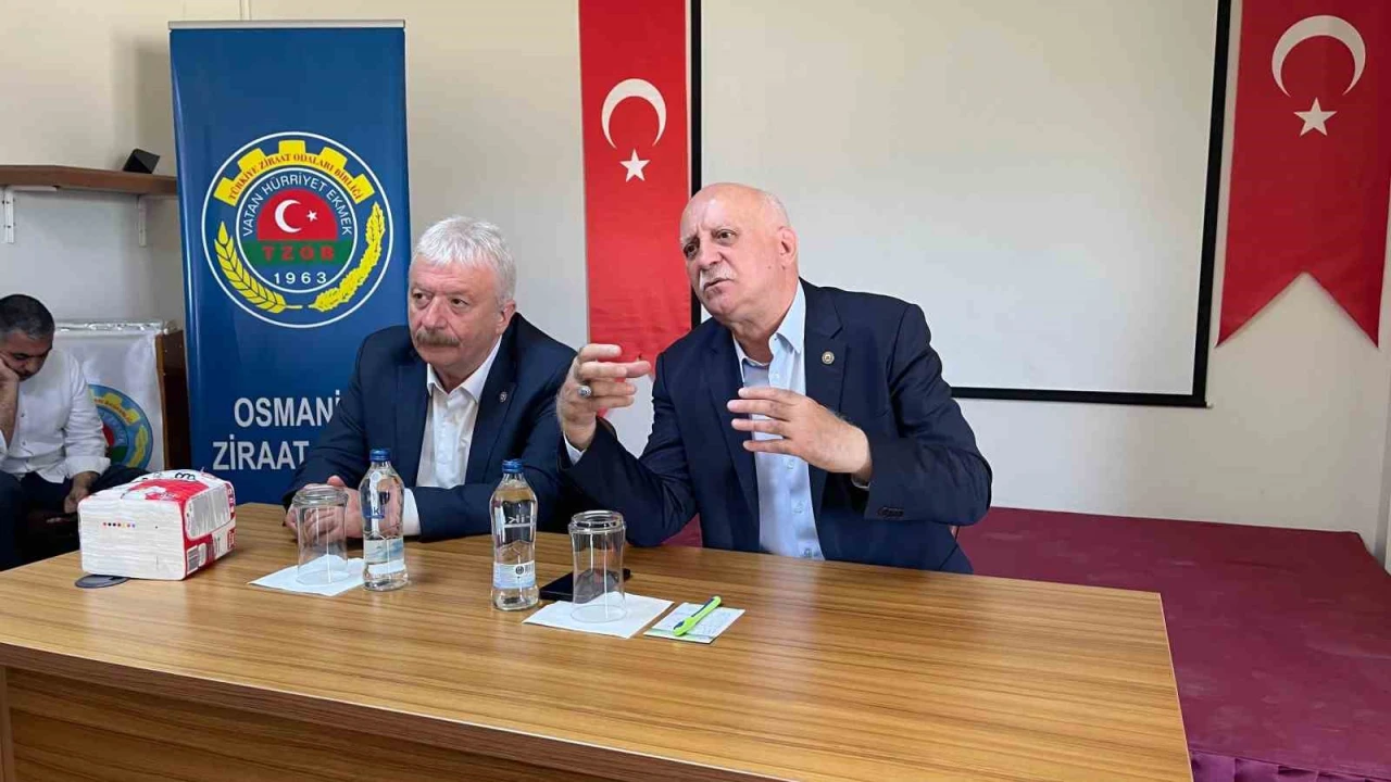 TZOB GENEL BAŞKANI ŞEMSİ BAYRAKTAR, OSMANİYE'DE ÇİFTÇİLERLE BİR ARAYA GELDİ. DON, DOLU, KURAKLIK GİBİ AFETLERİN TARIMI VURDUĞUNU BELİRTEN BAYRAKTAR, SU KRİZİNE KARŞI ACİL ÖNLEM ÇAĞRISI YAPTI.