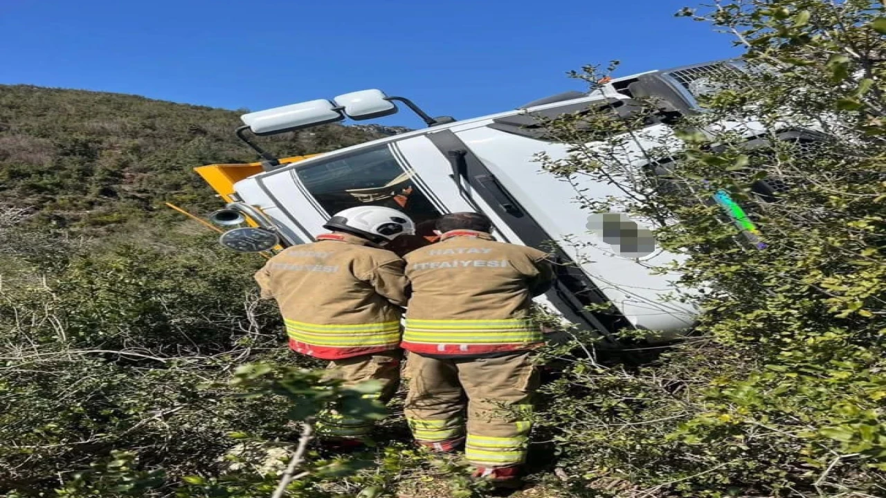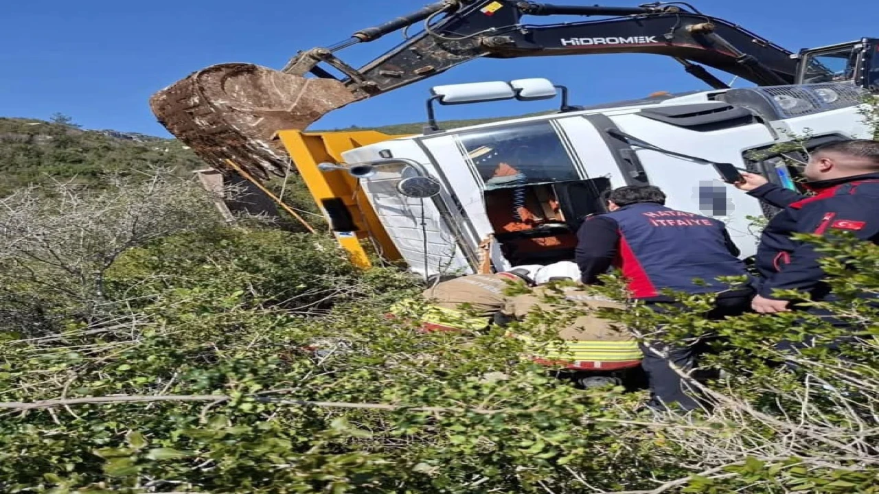 Hatay’ın Samandağ ilçesinde uçuruma yuvarlanan hafriyat kamyonun sürücüsü hayatını kaybetti.