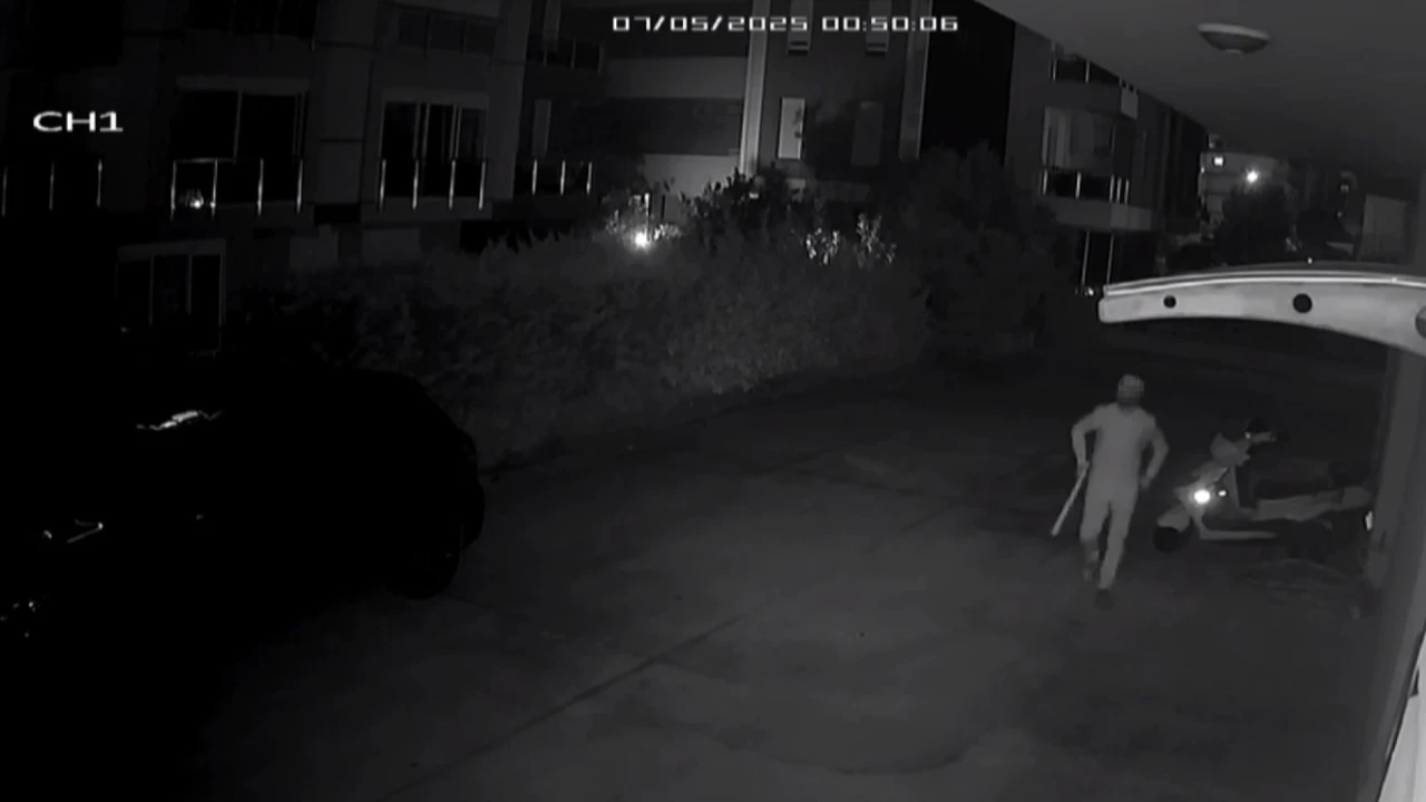 Soruşturma kapsamında ortaya çıkan güvenlik kamerası görüntülerinde, olay gecesi şüphelinin sitenin arka kapısı çevresine geldiği, bir süre etrafı kontrol ettiği ve ardından eldiven giydiği anlar yer alıyor. Devamında elindeki sopayla karanlık alana doğru ilerlediği görülürken, son görüntülerde ise aynı kişinin hızla koşarak motosikletin bulunduğu tarafa doğru olay yerinden uzaklaştığı anlar güvenlik kamerasına yansıyor.