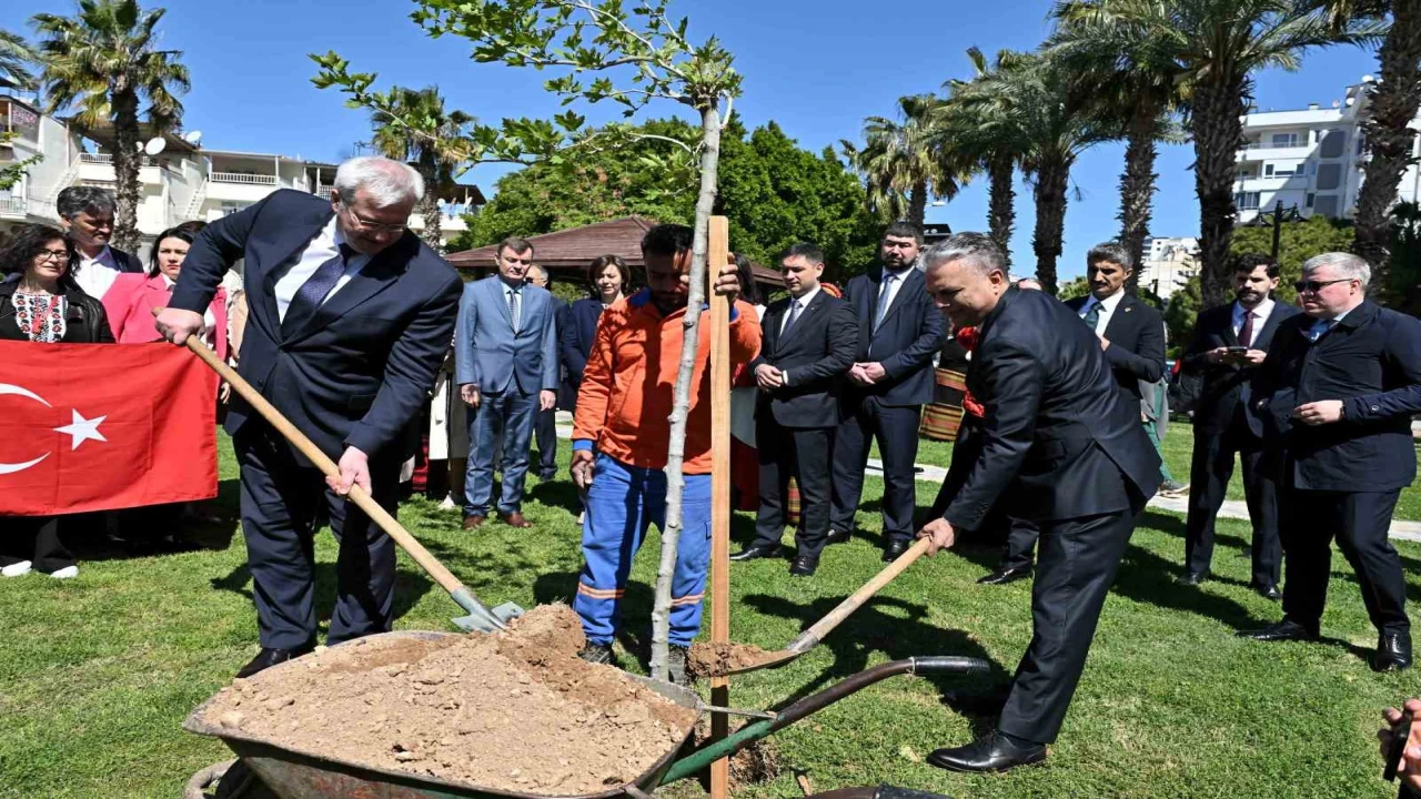 Antalya’da Muratpaşa Belediye Başkanı Ümit Uysal ve Ukrayna Dışişleri Bakanı Andriy Sibiha, Ukrayna ve Türkiye arasındaki dostluğun simgesi olarak Ukrayna Kültür Parkı’nda birlikte çınar ağacı dikti.