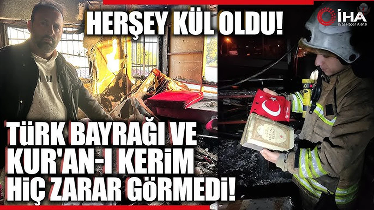 HATAY’IN DÖRTYOL İLÇESİNDE BİR EVDE ÇIKAN YANGINDA EV HARABEYE DÖNERKEN EVİN İÇERİSİNDE BULUNAN KURANI KERİM VE TÜRK BAYRAĞI ZARAR GÖRMEDİ.
