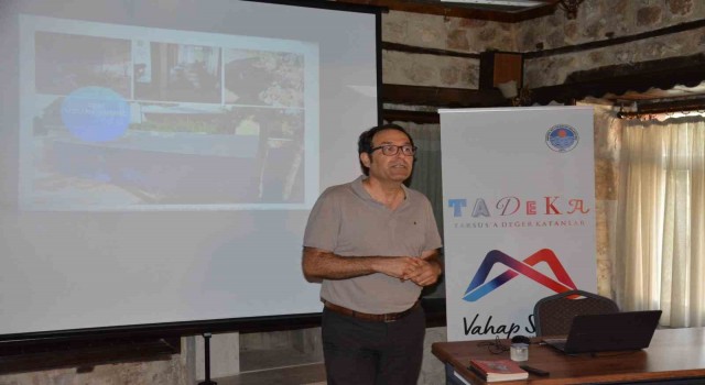 Dr. Ali Cerrahoğlu’nun sunumu ve gazeteci Uğur Pişmanlık’ın açılış konuşmasıyla başlayan söyleşide Uzuncaburç Antik Kenti’nde kazı başkanlığını da yürüten Prof. Dr. Aydınoğlu, bölgedeki en büyük restorasyon laboratuvarının Uzuncaburç’ta kurulduğunu söyledi.