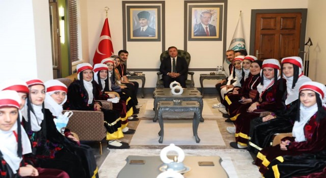 Erzincan’da düzenlenen "Gençlik ve Spor Bakanlığı Gençlik Merkezleri Halk Oyunları Bölge Finali"ne katılmak üzere Erzincan’a gelen Bitlis Tatvan Gençlik Merkezi Halk Oyunları ekibi ve eğitmenleri Vali Hamza Aydoğdu’yu, ziyaret ettiler.