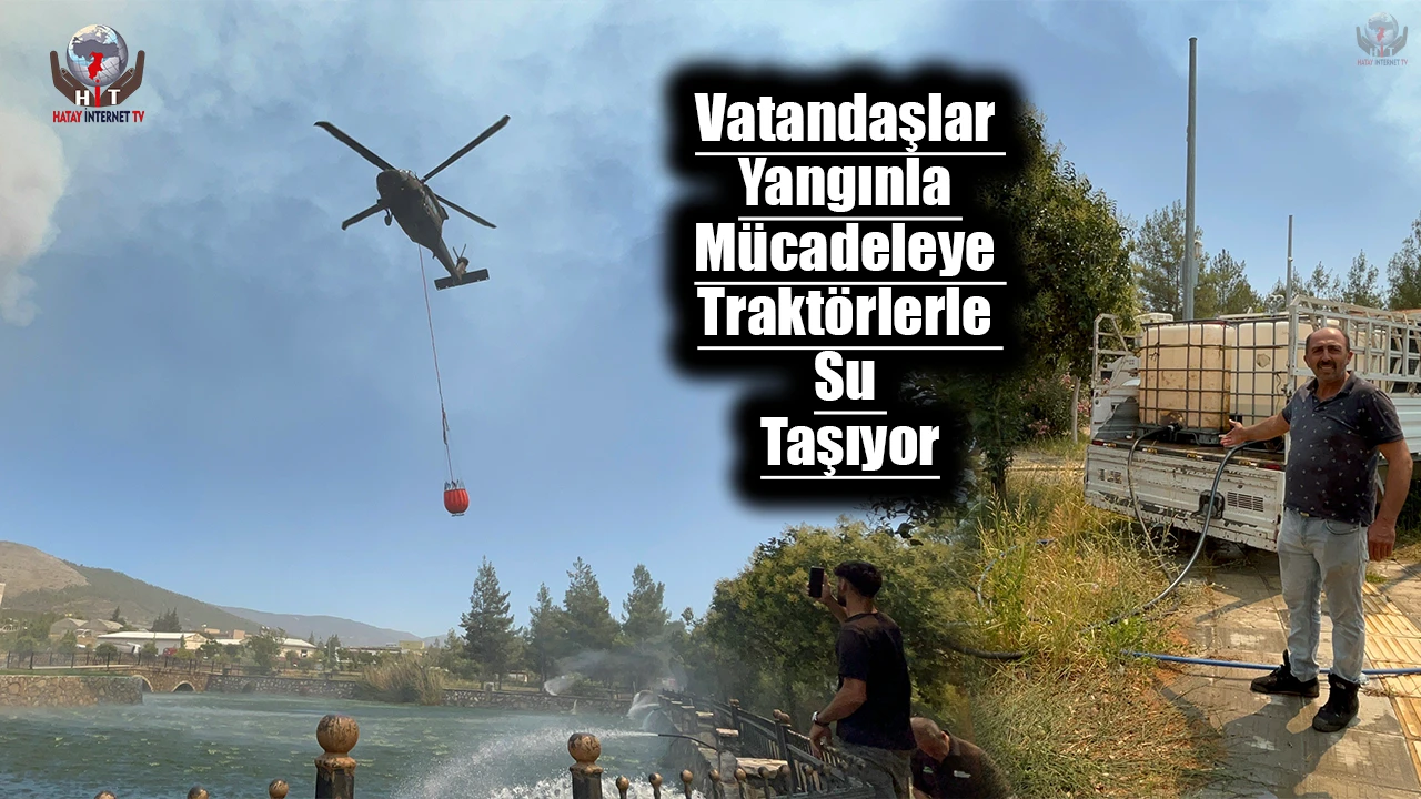 Yangına müdahale çalışmalarını kolaylaştırmak için vatandaşlar da seferber oldu. Vatandaşlar, yangın söndürme helikopterlerinin su ihtiyacını karşılamak amacıyla yaklaşık 45 kilometre uzaklıktaki Yayladağı ve çevre mahallelerden Mustafa Kemal Üniversitesi kampüsünde bulunan gölete traktör ve araçlarıyla içme suyu taşıyor.