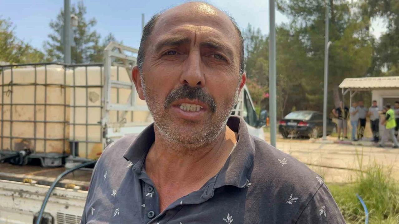 Yayladağı Bozlu Mahallesi’nden gelen Adnan Kadim, sabah saatlerinden bu yana traktörüyle su taşıdığını belirterek, "Akşamdan bu yana buradaki havuza köyümüzdeki içme suyunu çekiyoruz. Yeter ki ormanlarımız yanmasın. Biz hepimiz bir aileyiz. Traktörlerimizle, araçlarımızla içme suyumuzu getiriyoruz. 45 kilometreden buraya su taşıyoruz" dedi.