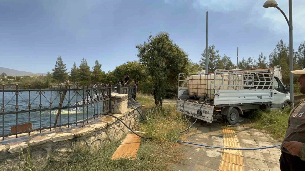 Hatay’da 25 saattir süren orman yangınına 16 ilden gelen ekipler müdahale ederken, çevre ilçelerden gelen vatandaşlar da traktör ve araçlarıyla gölete su taşıyarak söndürme çalışmalarına destek veriyor.