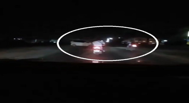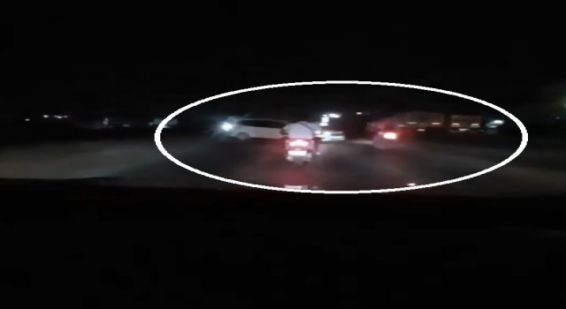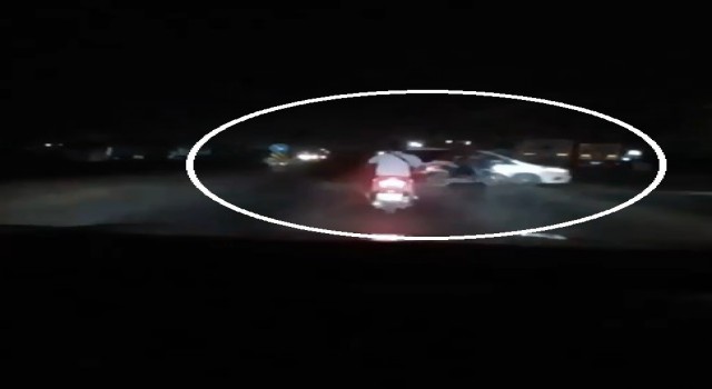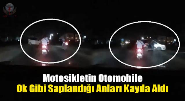 Video çekmek isterken motosikletin otomobile ok gibi saplandığı anları kayda aldı