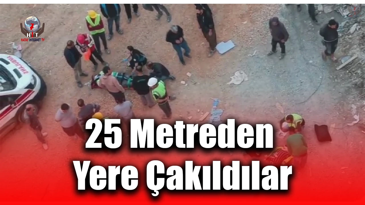 HATAY (İHA) - Hatay'da şantiye alanında 25 metrelik vincin kırılmasıyla yere düşen 2 işçi, metrelerce yükseklikten yere çakılarak yaralandı.
