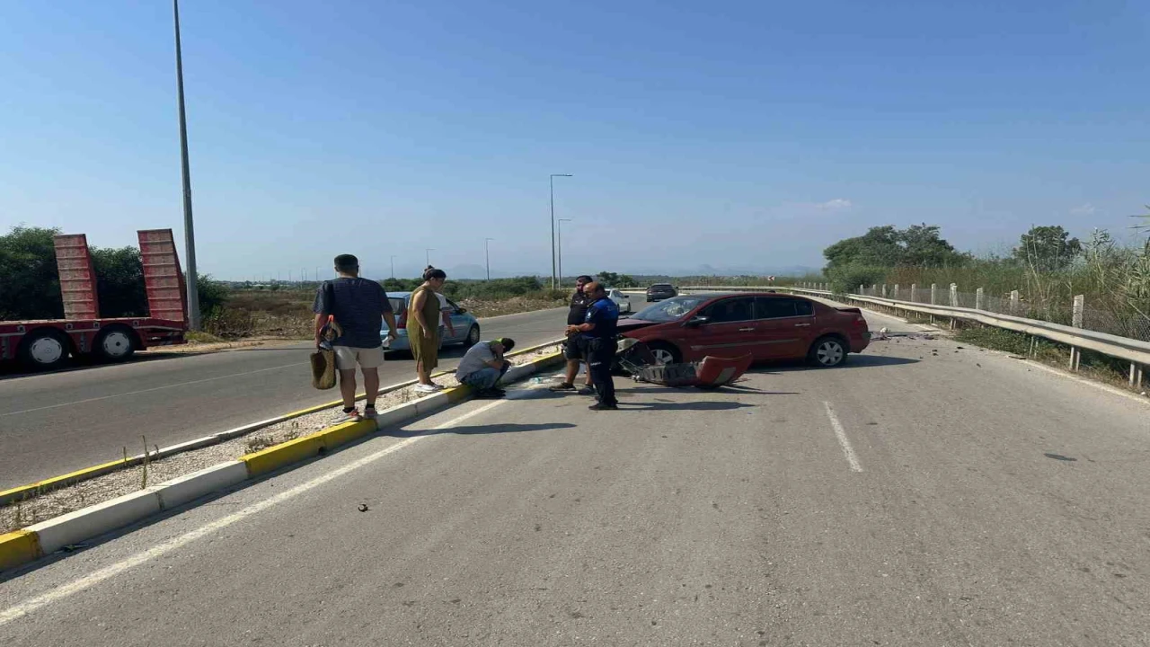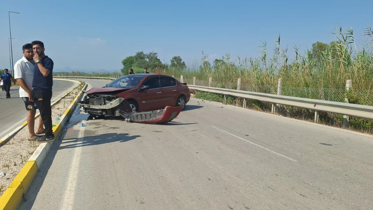 Antalya’nın Serik ilçesinde virajı alamayan otomobil refüje çarptı, sürücü yaralandı.
