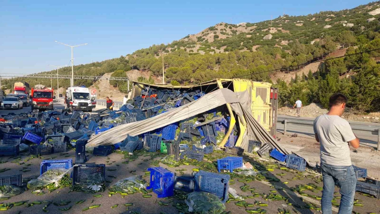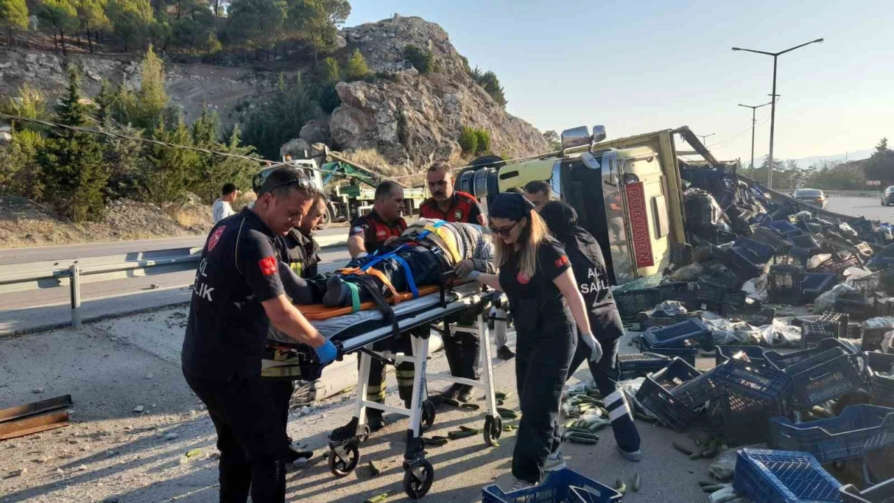 Burdur-Fethiye karayolunda virajı alamayan sebze yüklü kamyonun refüje devrilmesi sonucu 1 kişi yaralandı.