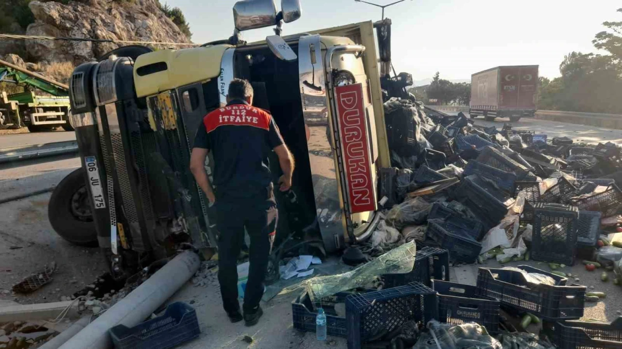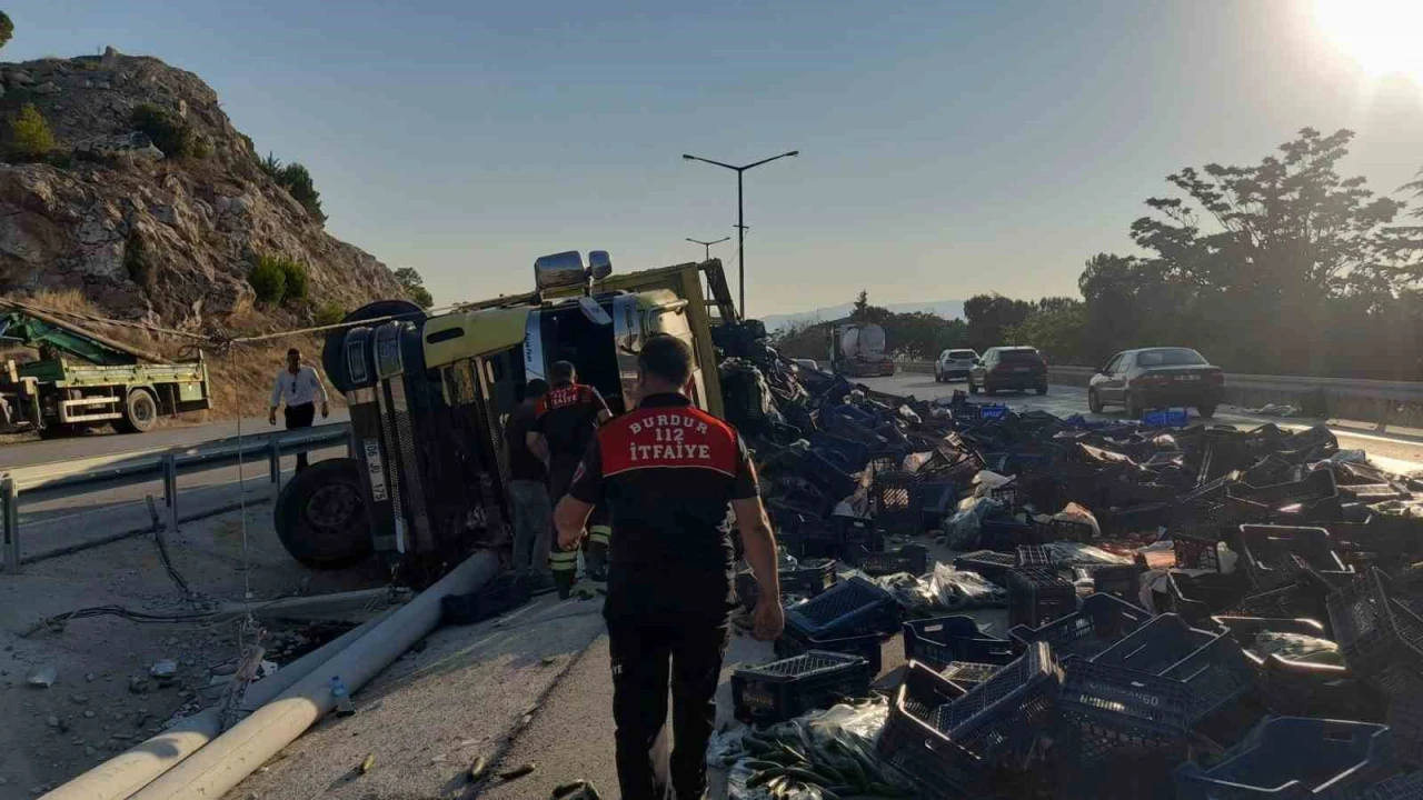 Kaza, saat 18.30 sıralarında Burdur-Fethiye karayolu Kuş Gözlemevi yakınlarında meydana geldi. Edinilen bilgilere göre, Fethiye istikametinden Burdur istikametine seyreden Hakan B. idaresindeki 06 JU 175 plakalı Scania marka kamyon, virajı alamayarak refüje devrildi. Kazada kamyon içinde sıkışan sürücü Hakan B. yaralandı. Çevredekilerin 112 Acil Çağrı Merkezi’ne ihbarı üzerine bölgeye sağlık, itfaiye, jandarma ve polis ekipleri sevk edildi. Olay yerine gelen itfaiye ekiplerince araçtan çıkarılan yaralı sürücü, ambulansla Burdur Devlet Hastanesi’ne kaldırıldı. Yola saçılan sebzeler nedeniyle kısmi olarak trafiğe kapanan yol, yapılan temizlik çalışmalarının arından tekrar trafiğe açıldı.