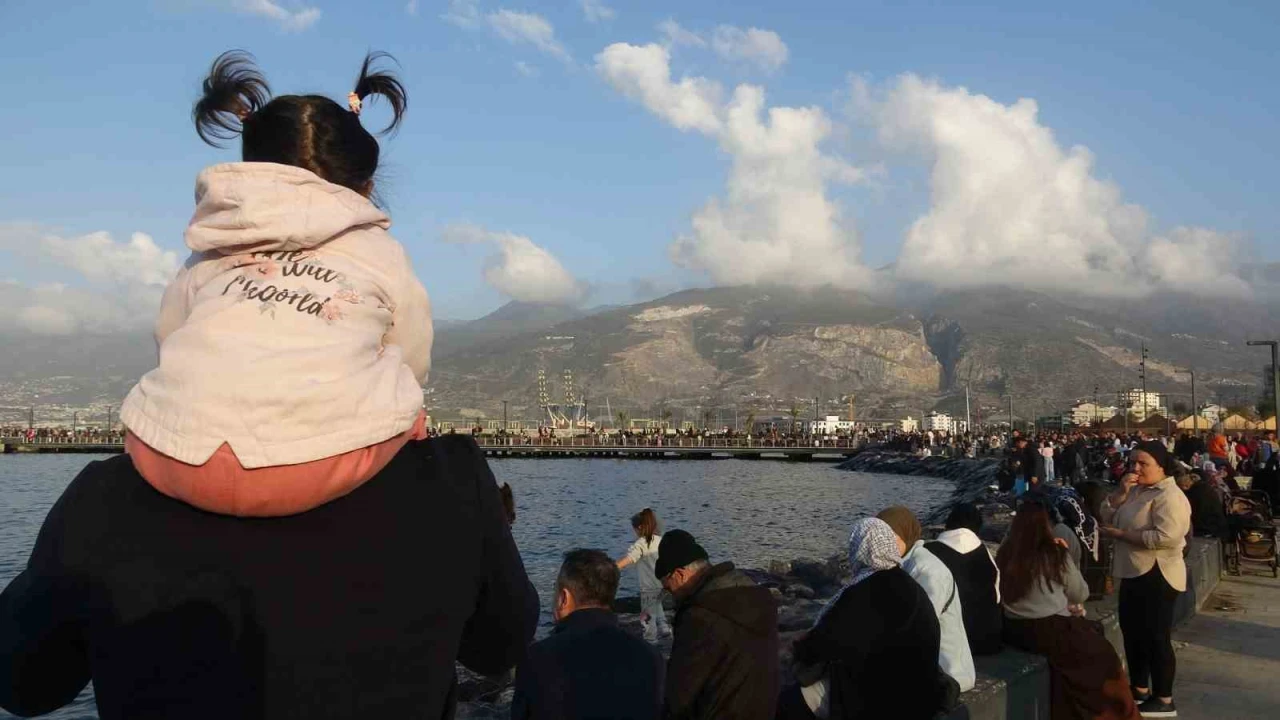 Yağışlı havanın son bulmasını fırsat bilen vatandaşlar İskenderun Sahili'ne akın etti
