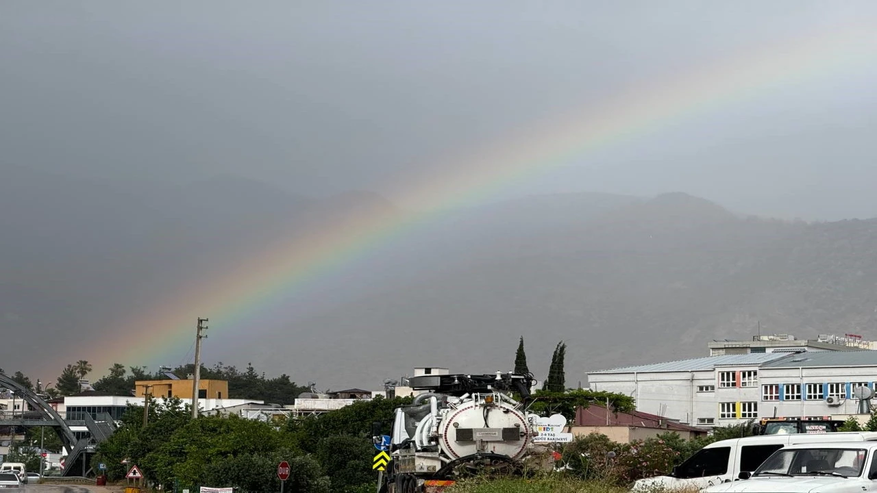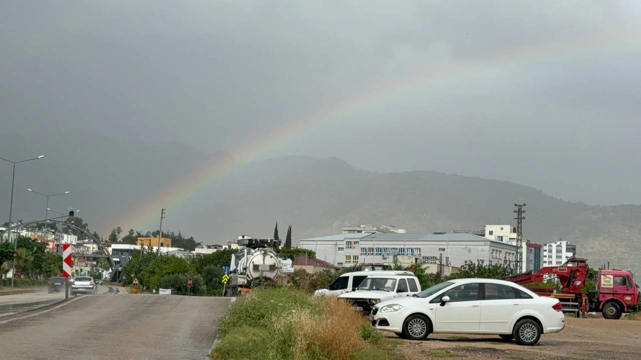 Adana’nın Kozan ilçesinde kısa süreli yağışın ardından gökkuşağı oluştu.