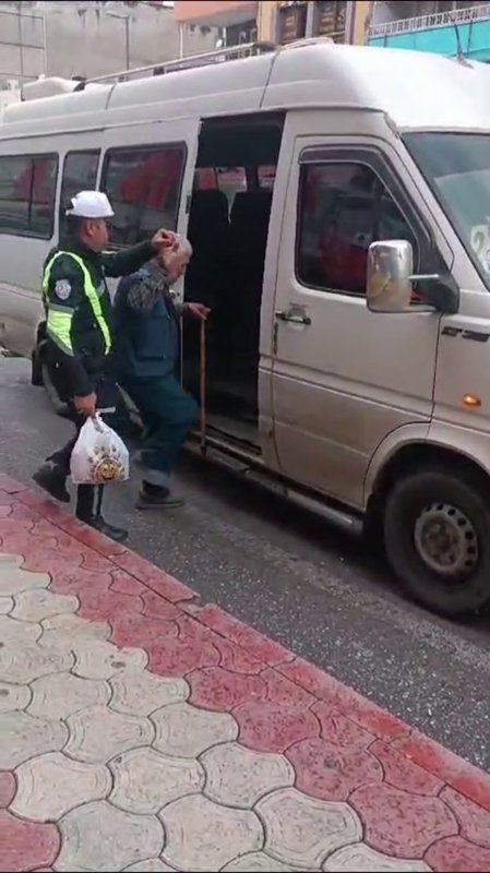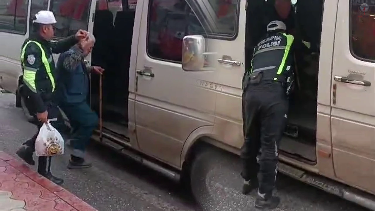 İlçe merkezinde yağmurda ıslanan görme engelli vatandaşı fark eden polis memuru, engelli adamın yardımına yetişti. Yağmurdan ıslanan görme engeli vatandaşı kapalı alanda bekleten polis memuru, kendi elleriyle minibüse bindirdi. Cep telefonuyla görüntülenen o anlar gönüller fethetti. Sosyal medyada paylaşılan görüntüler vatandaşlardan da takdir topladı.