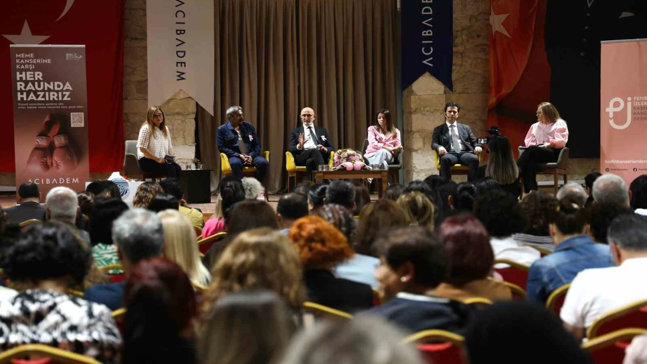 Serginin ardından moderatörlüğünü Pi Kadın Kanserleri Derneği Başkanı Seral Çelik’in yaptığı, oyuncu Bülent Polat, genel cerrahi uzmanı Prof. Dr. Orhan Demircan, tıbbi onkolog Prof. Dr. Sinan Yavuz ve meme kanseriyle mücadele eden kadınların katıldığı söyleşi düzenlendi.