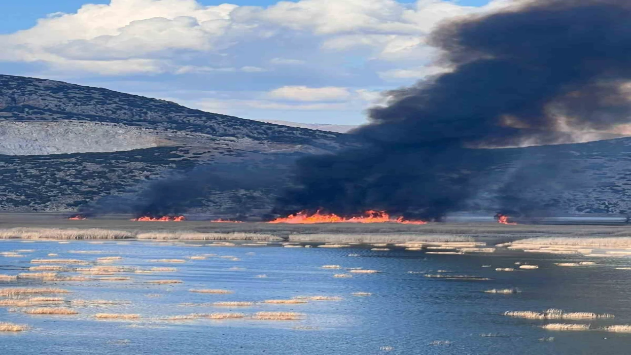 BURDUR’UN GÖLHİSAR İLÇESİNDE BULUNAN VE BÖLGEDEKİ ÖNEMLİ SULAK ALANLARINDAN BİRİ OLAN YAMADI GÖLÜ’NDE BİR HAFTA İÇİNDE İKİNCİ KEZ ÇIKAN SAZLIK YANGINI, EKİPLERİN 5 SAAT SÜREN MÜDAHALESİYLE KONTROL ALTINA ALINDI. YANGININ ÇIKIŞ SEBEBİ ARAŞTIRILIYOR.