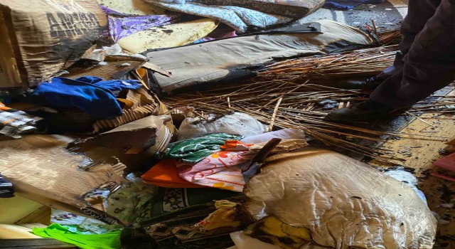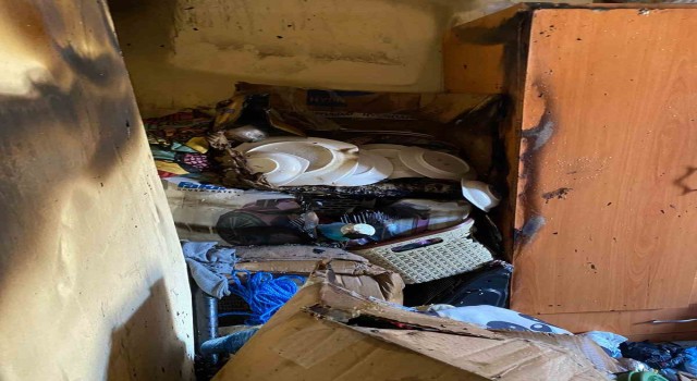 Antalya’da bir evin odasında çıkan yangında ev sahibi Teslime G., dumanın etkisiyle rahatsızlanırken, kızı Yağmur G.’ gözyaşlarına boğuldu. Söndürülen yangının ardından odada yanan eşyaları balkondan aşağı atması dikkat çekti.