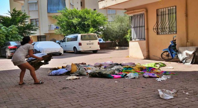 Yangın sonrası olayın ardından ev sahiplerinin yardıma koşan yakınları, yanan odadaki eşyaları balkondan aşağı atmaya başladı. Ev sahibinin kızı Yağmur G. ise atılan eşyaları gözyaşları içinde çöp konteynerinin içine attı.