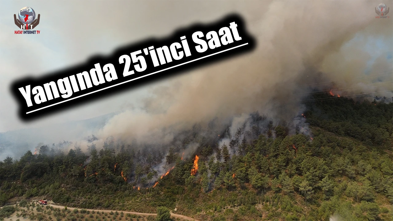 Hatay’da yangının 25’inci saatinde ekiplerin karadan ve havadan müdahalesi dronla görüntülendi.