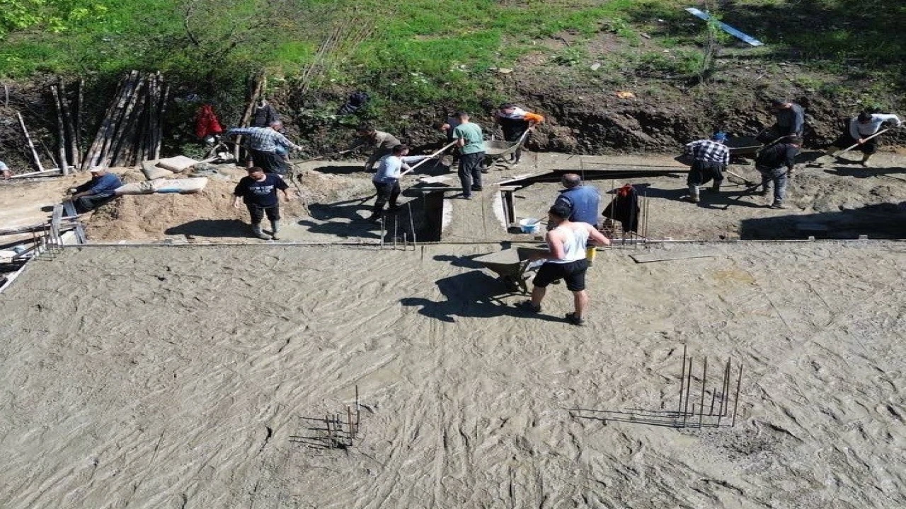 Adana’nın Feke ilçesinde yangında hasar görüp yıkılan ev imece usulü yapılmaya başlandı.
