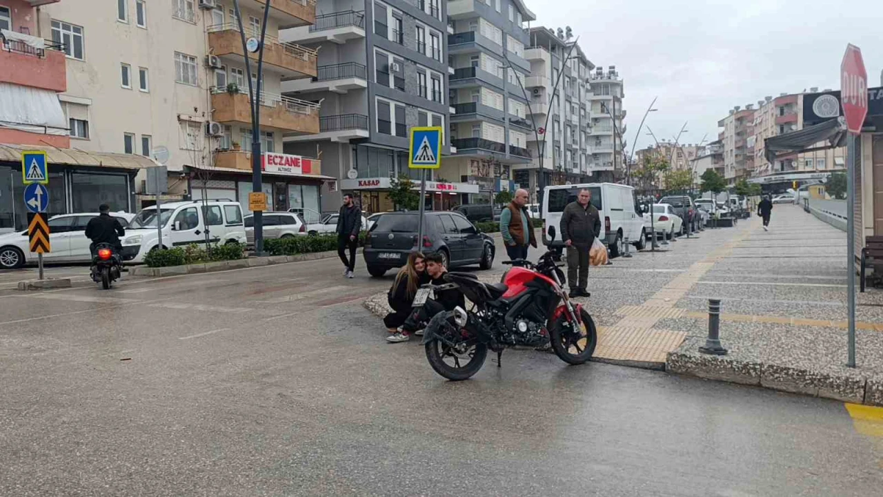 Antalya’nın Manavgat ilçesi Emek Mahallesi Barbaros Caddesinde, Salkımevler Mahallesi istikametine gitmekte olan Yunus Batuhan G.’nin kullandığı 07 BPM 410 plakalı motosiklet ile kavşak sisteminde dönmekte olan Murat T.’nin kullandığı 07 LEJ 70 plakalı Volkswagen marka otomobil çarpıştıtı. Kazada yaralanan motosiklet sürücüsü 112 sağlık ekibinin olay yerindeki müdahalesinin ardından ambulansla hastaneye kaldırılırken, ambulans gelene kadar yerde yatan motosiklet sürücüsünü yanında bulunan kız arkadaşı sarılıp teselli etmeye çalıştı.