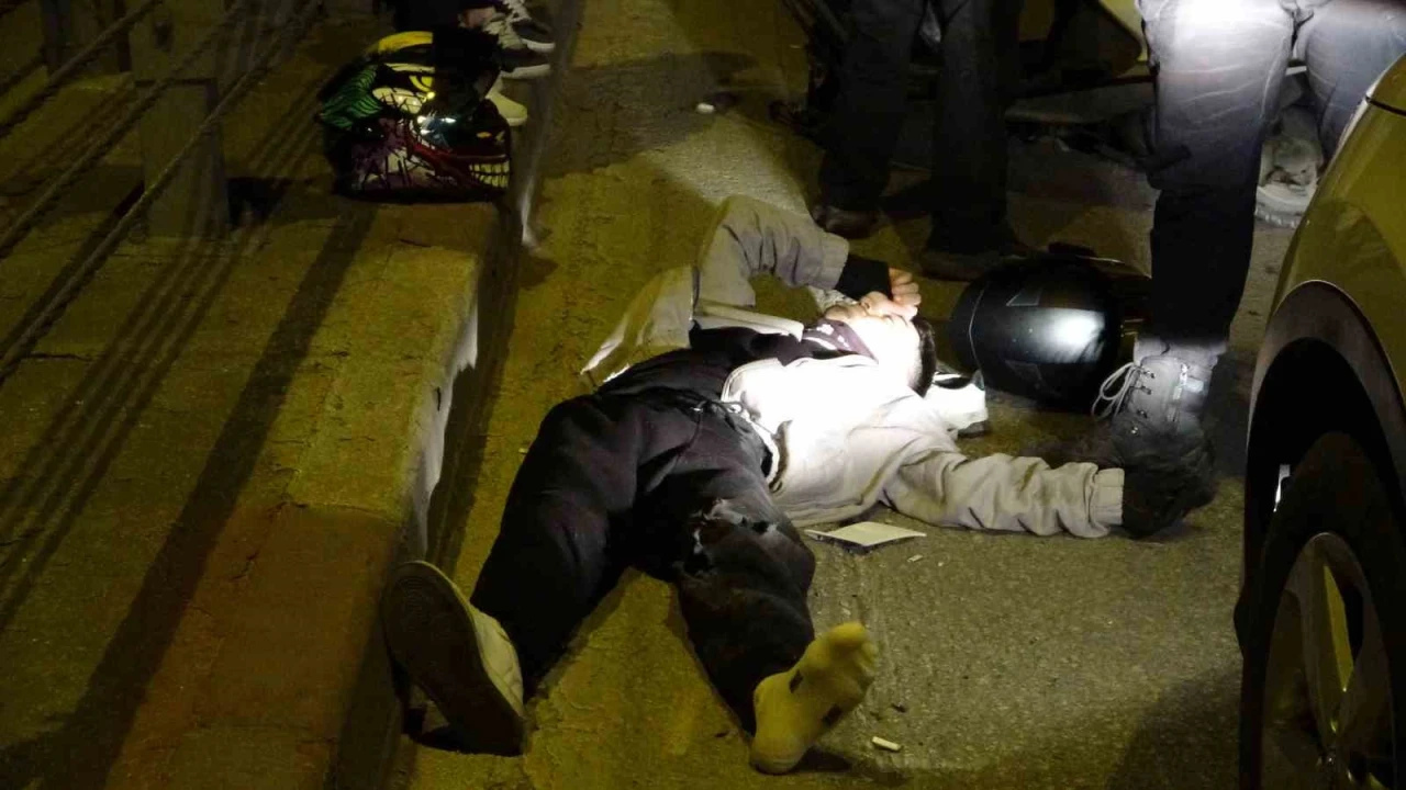 Ancak motosikletin süratli, mesafenin ise kısa olması nedeniyle duramayarak önünde ilerlemekte olan 07 ABE 266 plakalı Nissan marka otomobile çarptı. Çarpmanın etkisiyle savrulan motosiklet sürücüsü bariyerlere çarptı. Grupta bulunan arkadaşları ve diğer sürücülerin ihbarı ile olay yerine polis, sağlık ve itfaiye ekipleri sevk edildi. Genç motosikletliye ilk müdahale yoldan geçen vatandaşlar ve arkadaşları tarafından yapıldı. Verilen adrese gelen 112 Acil Sağlık ekipleri tarafından bacağında kırıklar olduğu belirlenen motosiklet sürücüsü Emir K.E. ilk müdahalesinin ardından ambulansla hastaneye götürüldü.