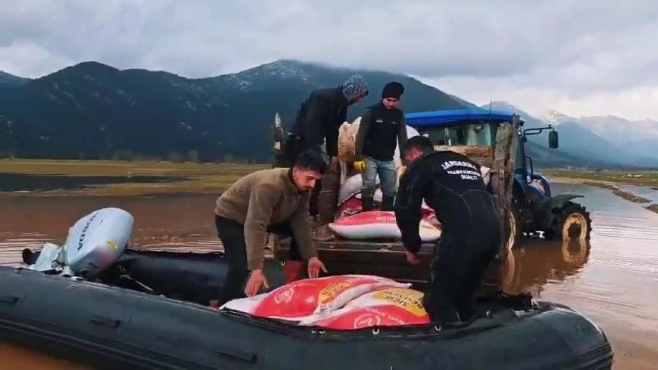 Antalya’nın İbradı ilçesinde jandarma ekiplerince şiddetli yağış nedeniyle yaylada mahsur kalan çoban ile 100 büyükbaş ve 450 küçükbaş hayvana yem ve erzak ulaştırıldı.