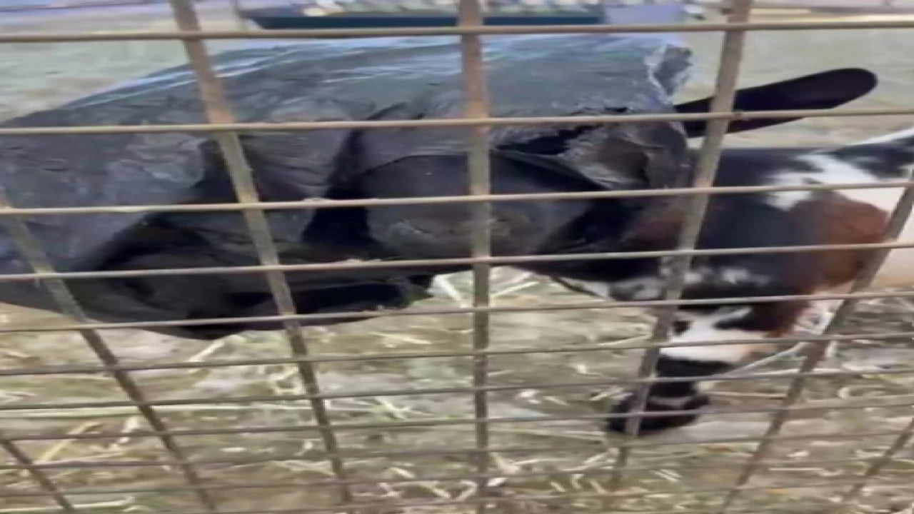 ANTALYA'DA YERDEKİ POŞETİ BAŞINA GEÇİREN CÜCE KEÇİ, ÇİFTLİKTEKİ DİĞER KEÇİLERİN ADETA KABUSU OLDU.