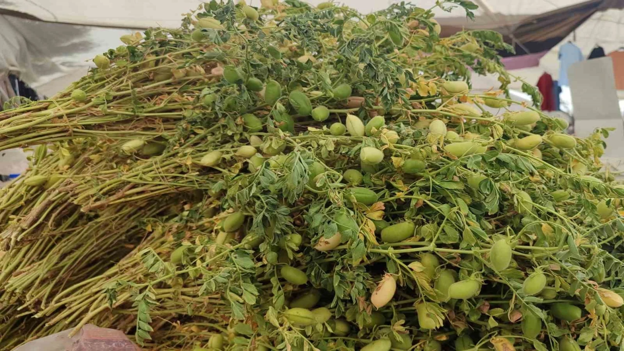 Kahramanmaraş’ta yetiştirilen ürünlerden yörede nohut firiği olarak bilinen ’yeşil nohut’ tezgahlarda yerini aldı.