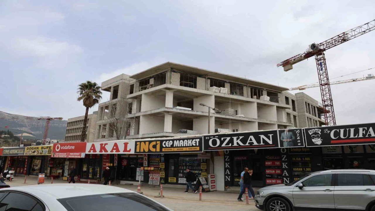 Kahramanmaraş’ta 6 Şubat depremleri öncesi yıkımı gerçekleştirilen ve kamuoyunda "Dünyanın en saçma binası" olarak anılan Özel İdare İş Merkezi’nin yerine iş hanı inşaatı başladı.