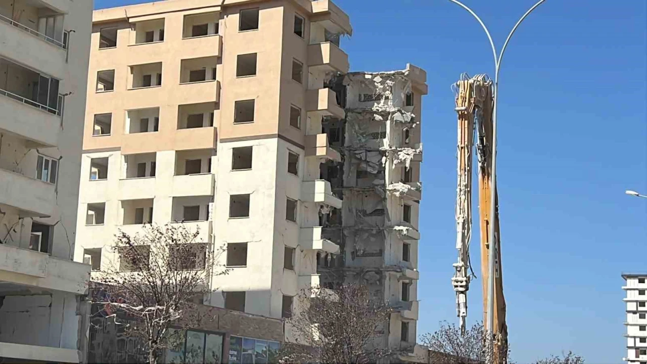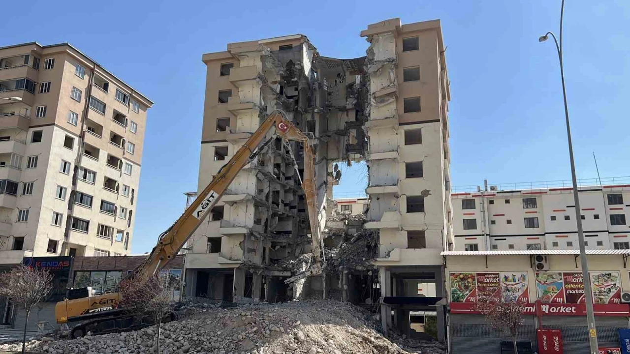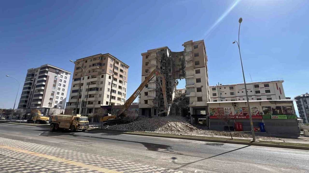 Kahramanmaraş’ta meydana gelen 6 Şubat depremlerinde hasar alan bir binanın yıkımı sırasında ortasında oluşturulan dev boşluk dikkat çekti.